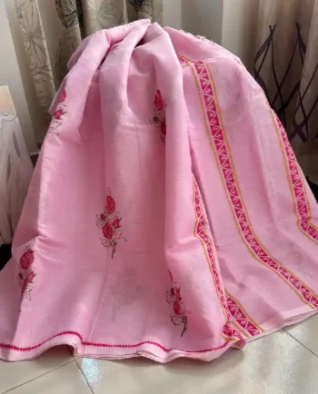 Boishak Kota Saree with Block Print and Blouse Piece #BCS 002