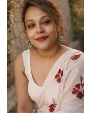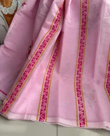 Awesome White Cotton Sari with Tulip Embroidery and Blouse PC #WC701