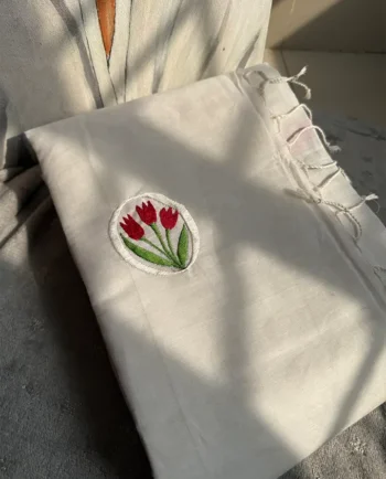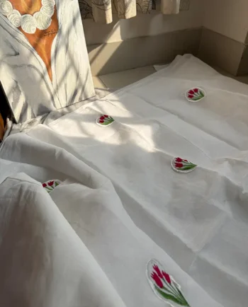 White Cotton Sari with Tulip Embroidery and Blouse PC #WC701
