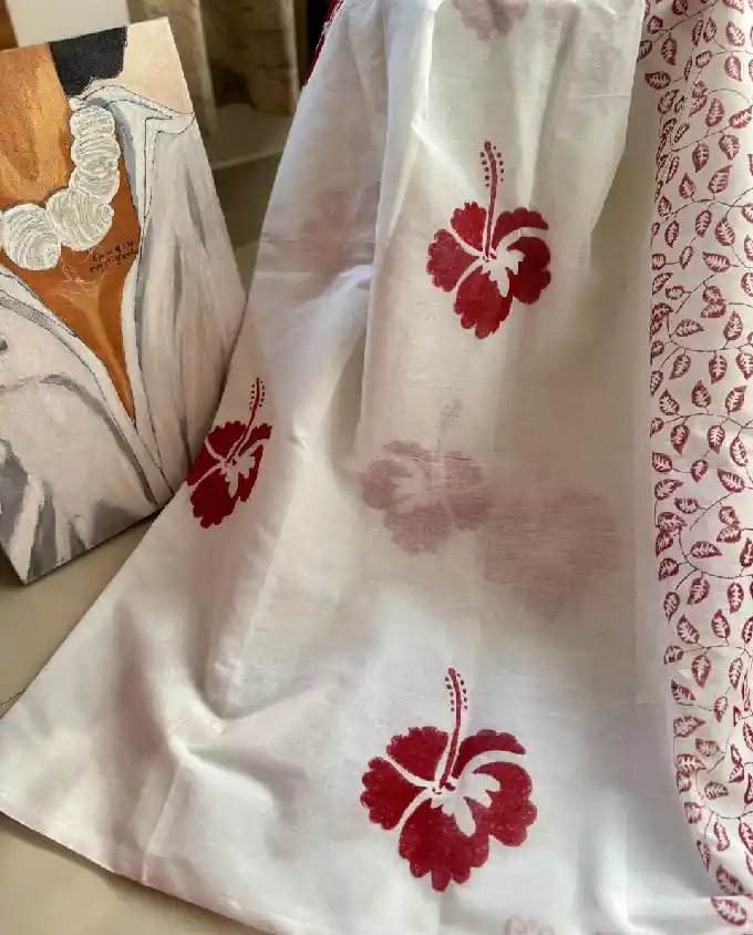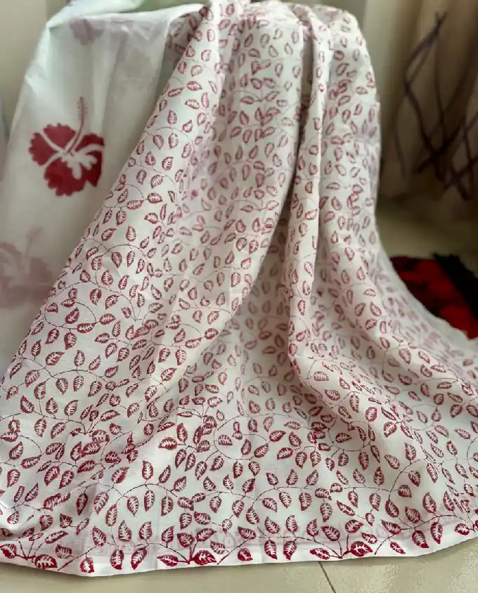 Designed in a traditional 14 haat length, this saree provides a fuller and more graceful drape, perfect for those who prefer a classic and generous wrap style. The beautiful block print work adds a touch of heritage charm, showcasing timeless patterns that reflect authentic craftsmanship. The balanced design keeps the look simple yet attractive.