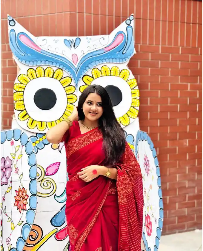 Designed in a traditional 14 haat length, this saree provides a fuller and more graceful drape, perfect for those who prefer a classic and generous wrap style. The beautiful block print work adds a touch of heritage charm, showcasing timeless patterns that reflect authentic craftsmanship. The balanced design keeps the look simple yet attractive.