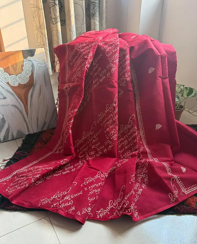 Designed in a traditional 14 haat length, this saree provides a fuller and more graceful drape, perfect for those who prefer a classic and generous wrap style. The beautiful block print work adds a touch of heritage charm, showcasing timeless patterns that reflect authentic craftsmanship. The balanced design keeps the look simple yet attractive.